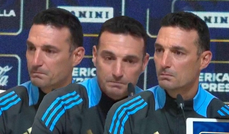 一名记者在听完主帅对梅西的感言后情难自已、当场落泪,而这一幕也深深触动了斯卡洛尼,导致他自己也一度眼眶湿润。