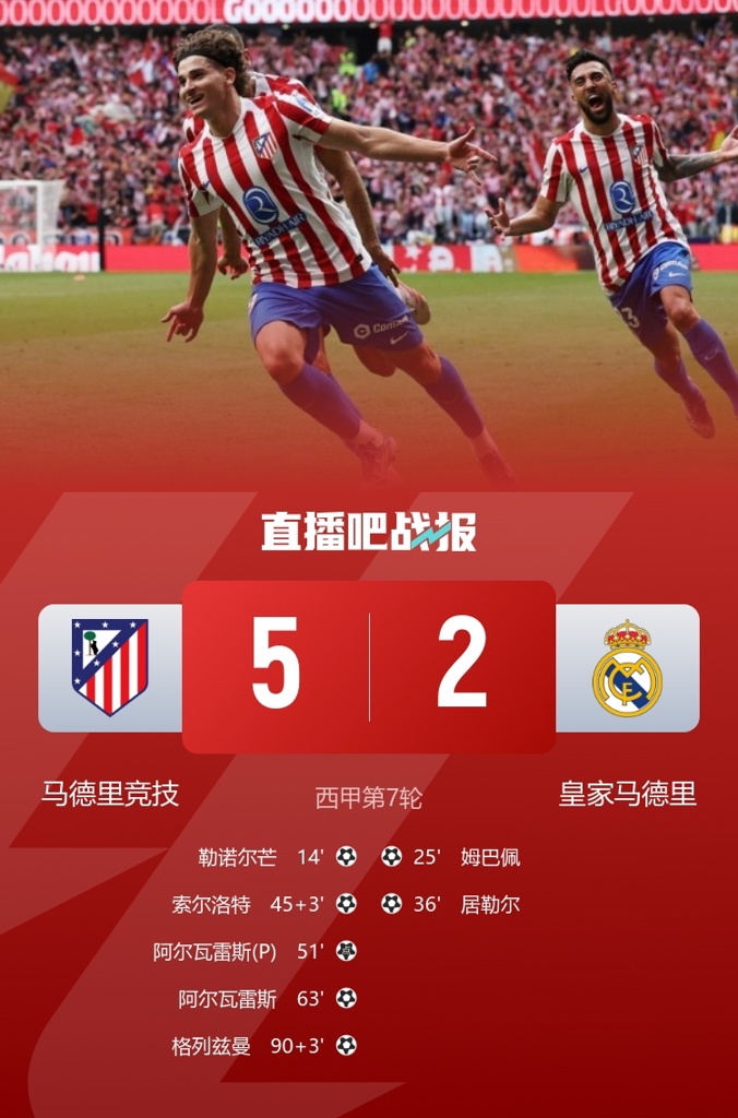 09月30日讯 西媒《阿斯》报撰文,透露了马德里德比双方的跑动距离。其中皇马球员的平均跑动距离仅为7.8公里,而马竞平均每人跑动9.6公里,比皇马多1.8公里。